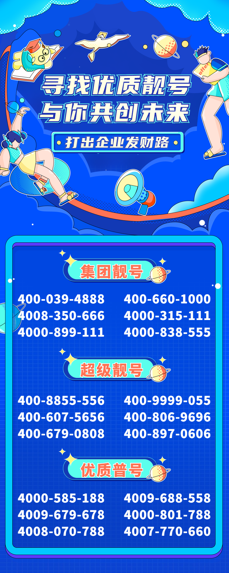 以上所有号码由公众号【登烈通400业务中心】进行提供